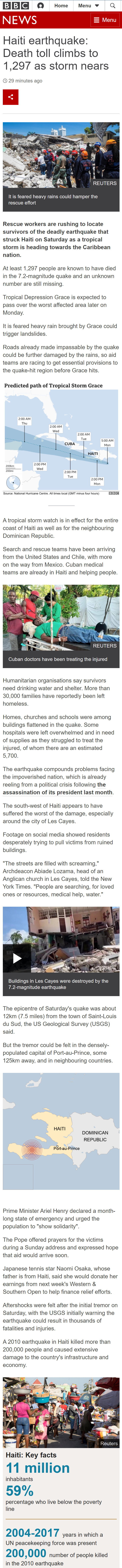 BBC News – Latin America – Haiti earthquake: Death toll climbs to 1,297 as storm nears